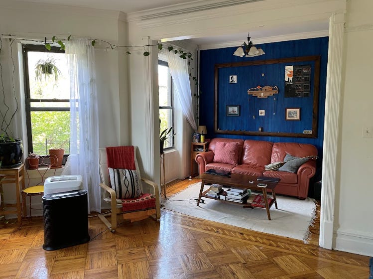 Charlotte: In working with the Alexandra, can you talk about putting together the park scene? In particular, all the pops of color, like the red velvet curtains in the rehearsal space or the amazing blue accent wall for Drew's apartment?